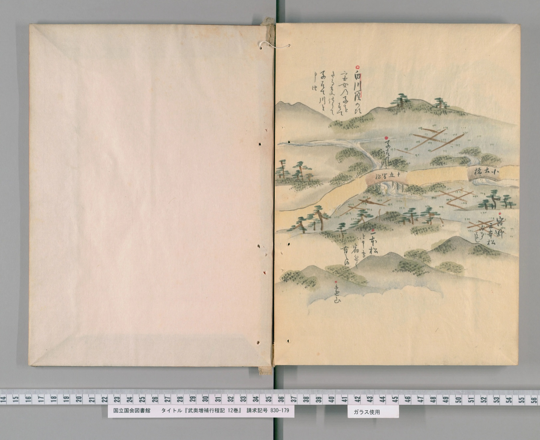 絵図の左下にある古歌 「陸奥の阿武隈川の 貴方なる 人忘れしの 山は険しき」