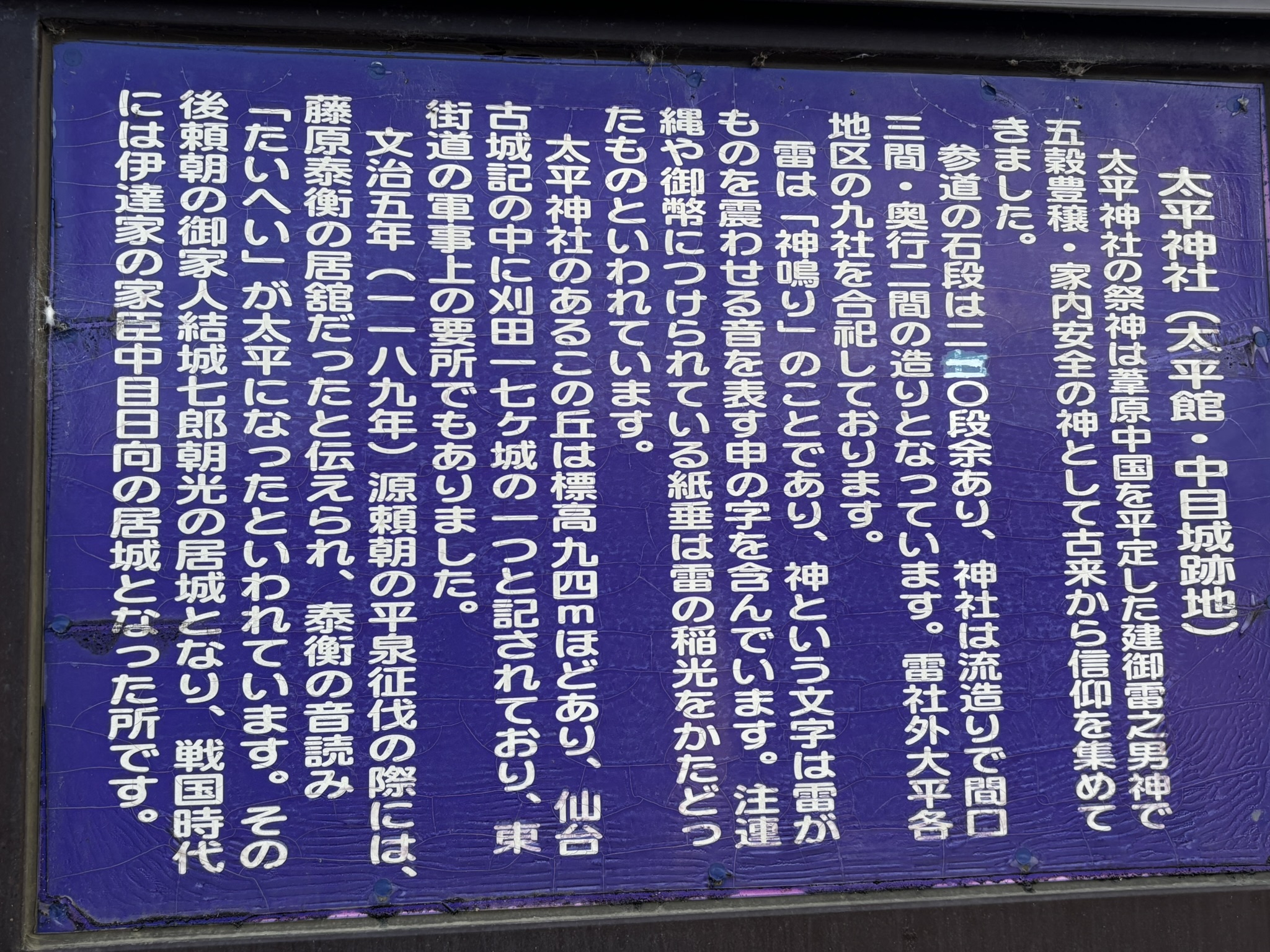 右中央にある太平館は藤原泰衡の館跡と言われます。泰衡を太平と呼んだのでしょう