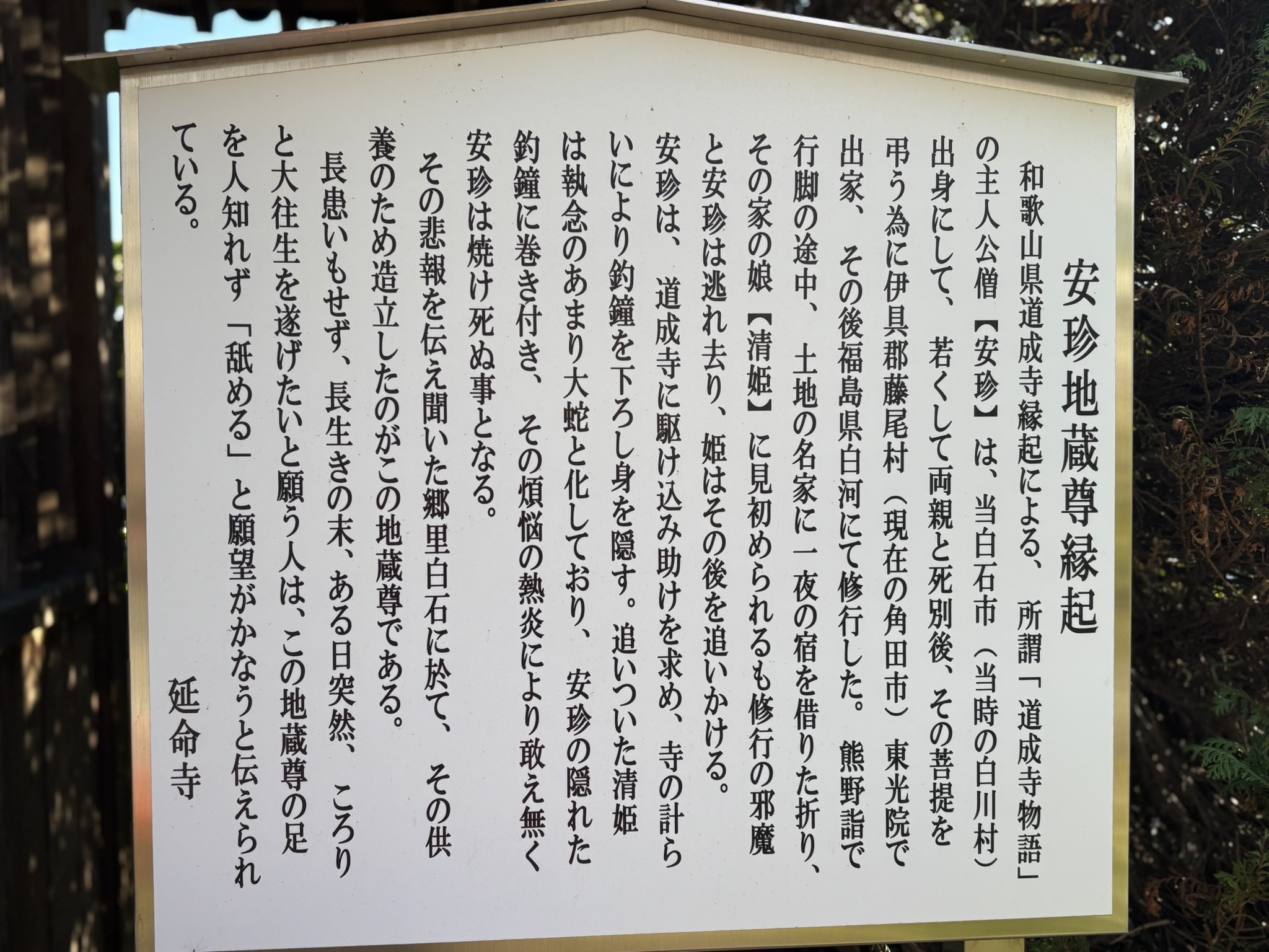 延命寺には行程記12-5-4に記載した白河郊外の安珍堂がここ白石でつながっているのは何かの因果でしょうか