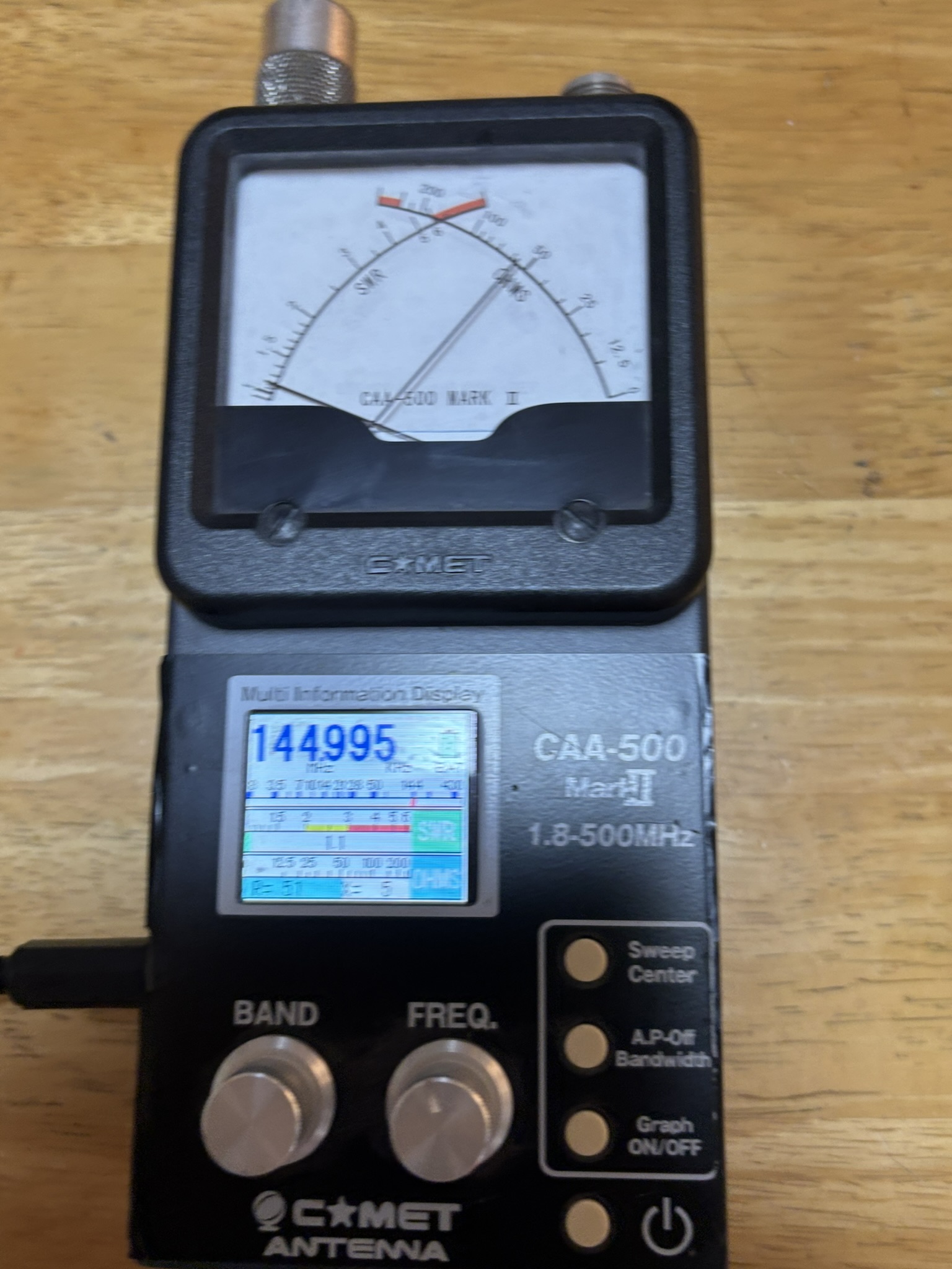 CAA-500MkⅡでの細密なアンテナ調整は難しそうです。周波数が低ければいけそうですが詳しくはNano VNA 活用 (Mr.Smithを使う )を参照してください