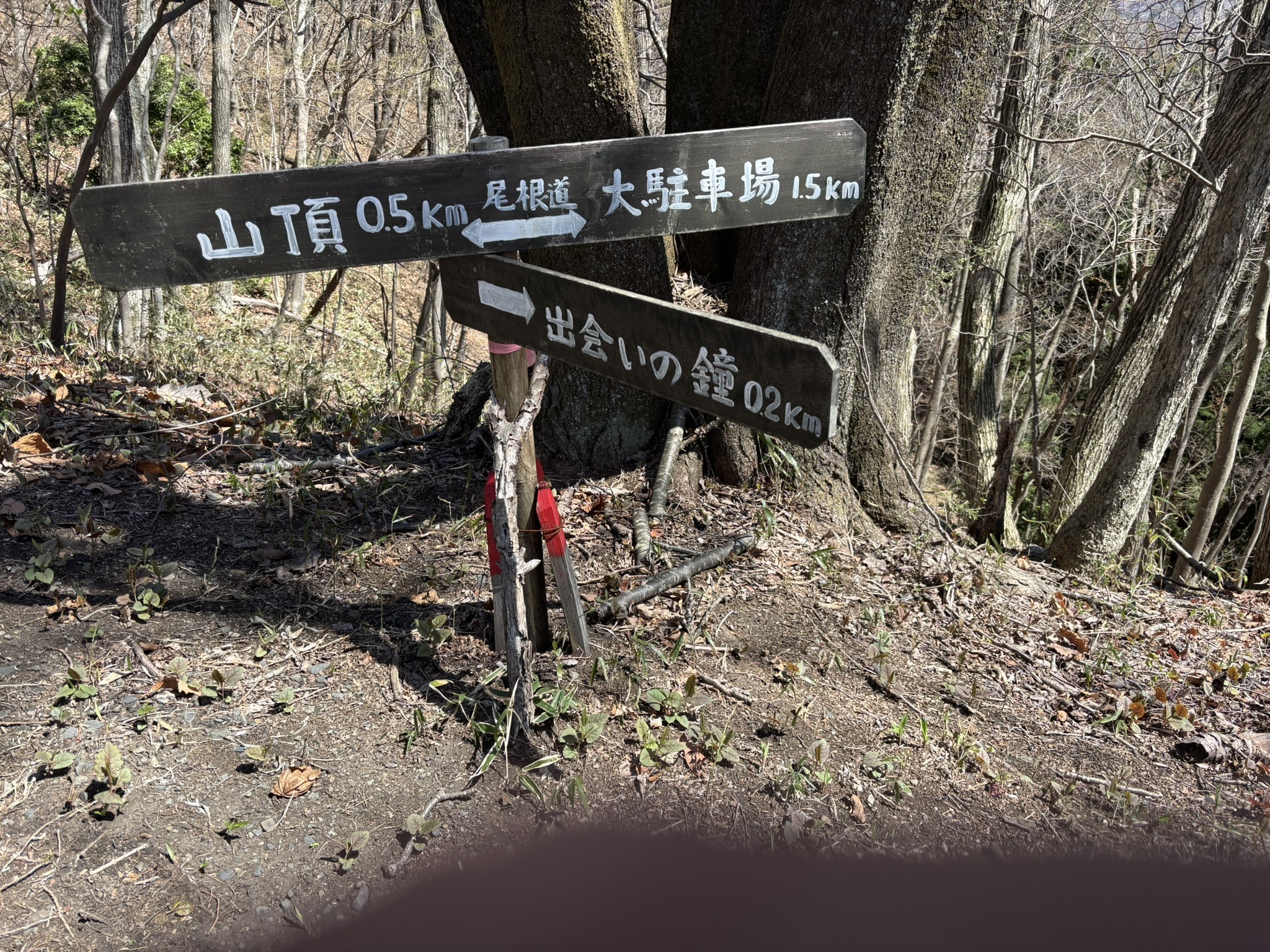 今回の登山は駐車場から 出会いの鐘ルート で尾根伝いに山頂を目指しました